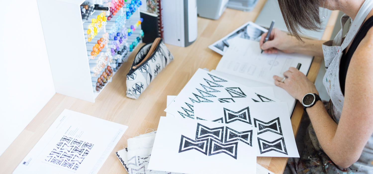 The process begins with a detailed sketch, mark or line drawing and the art work is then transferred to the computer to be engineered into a continuous pattern repeat. Before printing to transparency art work is separated into layers, for each colour and each layer is applied to a single screen.
